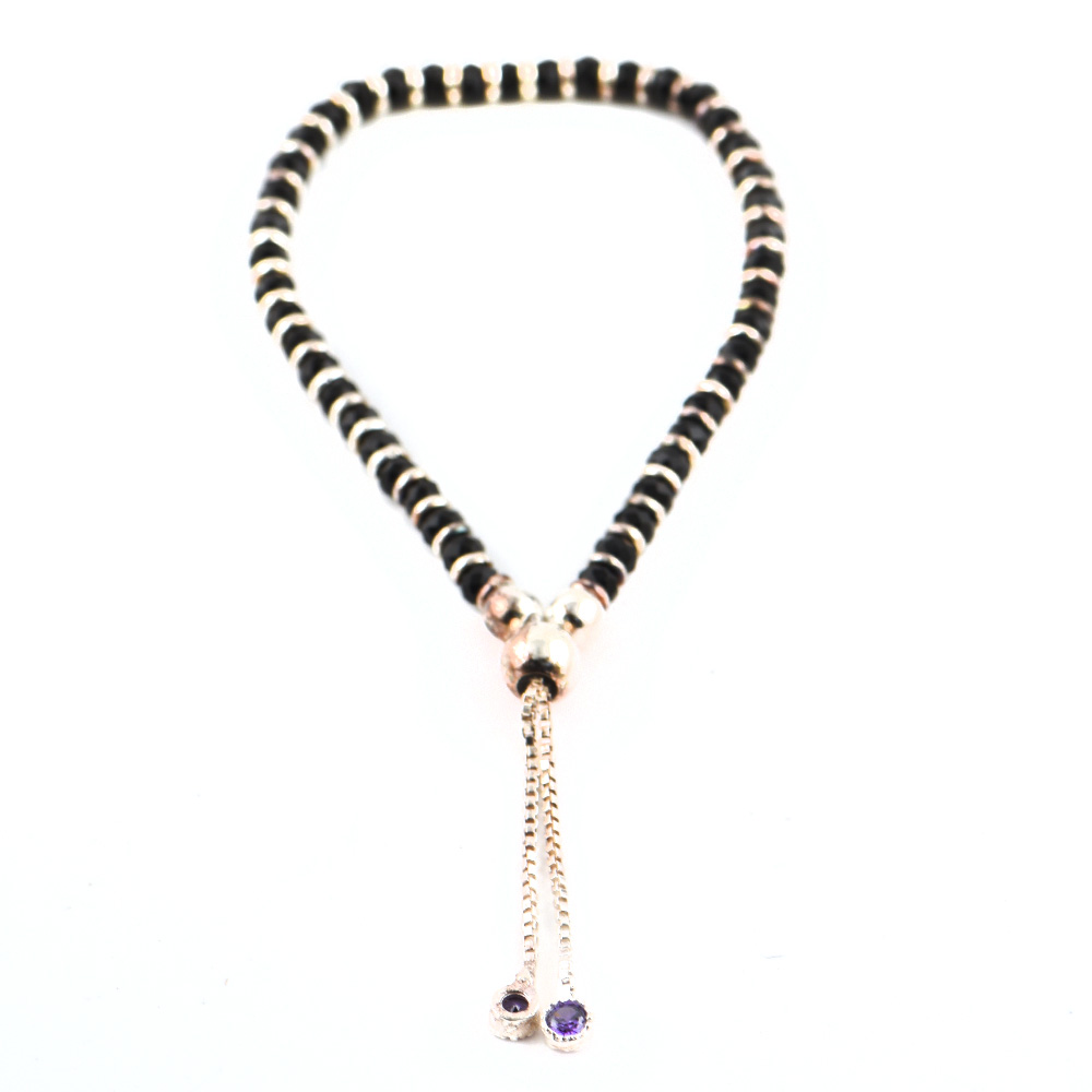 This Silver Black Beads Nazariya Bracelet is an ideal baby gift. Birthday celebrations, carnivals, and casual gifting are all appropriate occasions. Black beads on the Silver Bracelet ward off evil. The bracelet's size is adaptable.