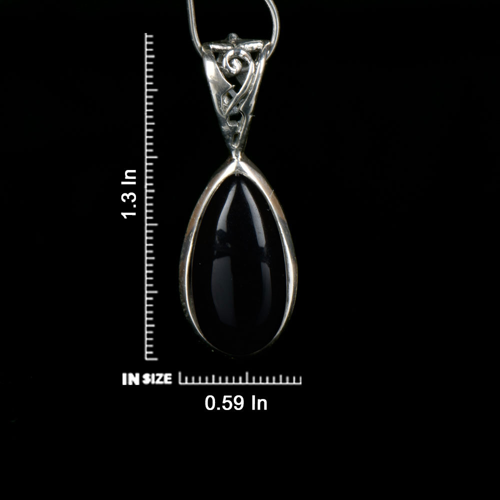 • 92.5 Sterling Silver Black Onyx  Pendant In Long Oval Shape