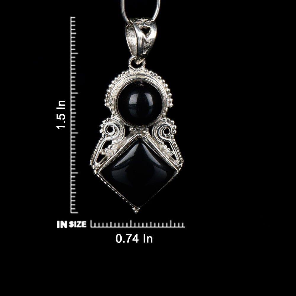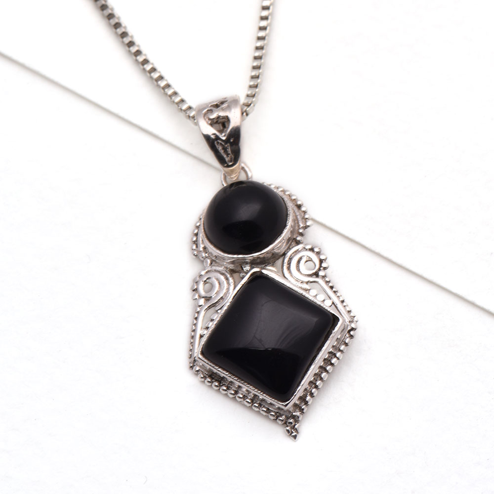 • 92.5 Sterling Silver Black Onyx  Pendant In Square And Round Shape