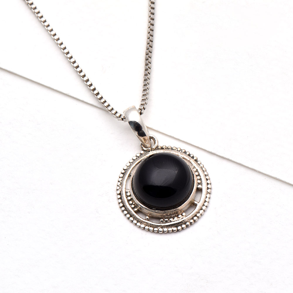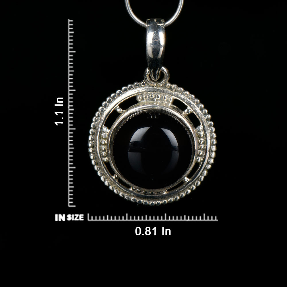 • 92.5 Sterling Silver Black Onyx Round Shaped Designer Pendant
