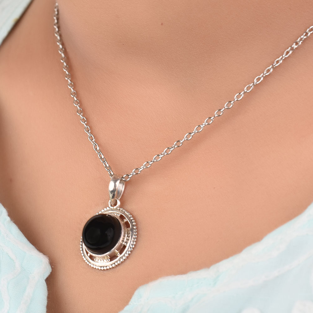Dazzle everyone with our silver pendant chain for women made in 925 Sterling Silver and Semi-Precious Stone Black Onyx. Suitable for Any Season these pure silver pendant would make a great birthday gift, anniversary gift, mother's day gift, valentine's day gift, Christmas gift, wedding gift.