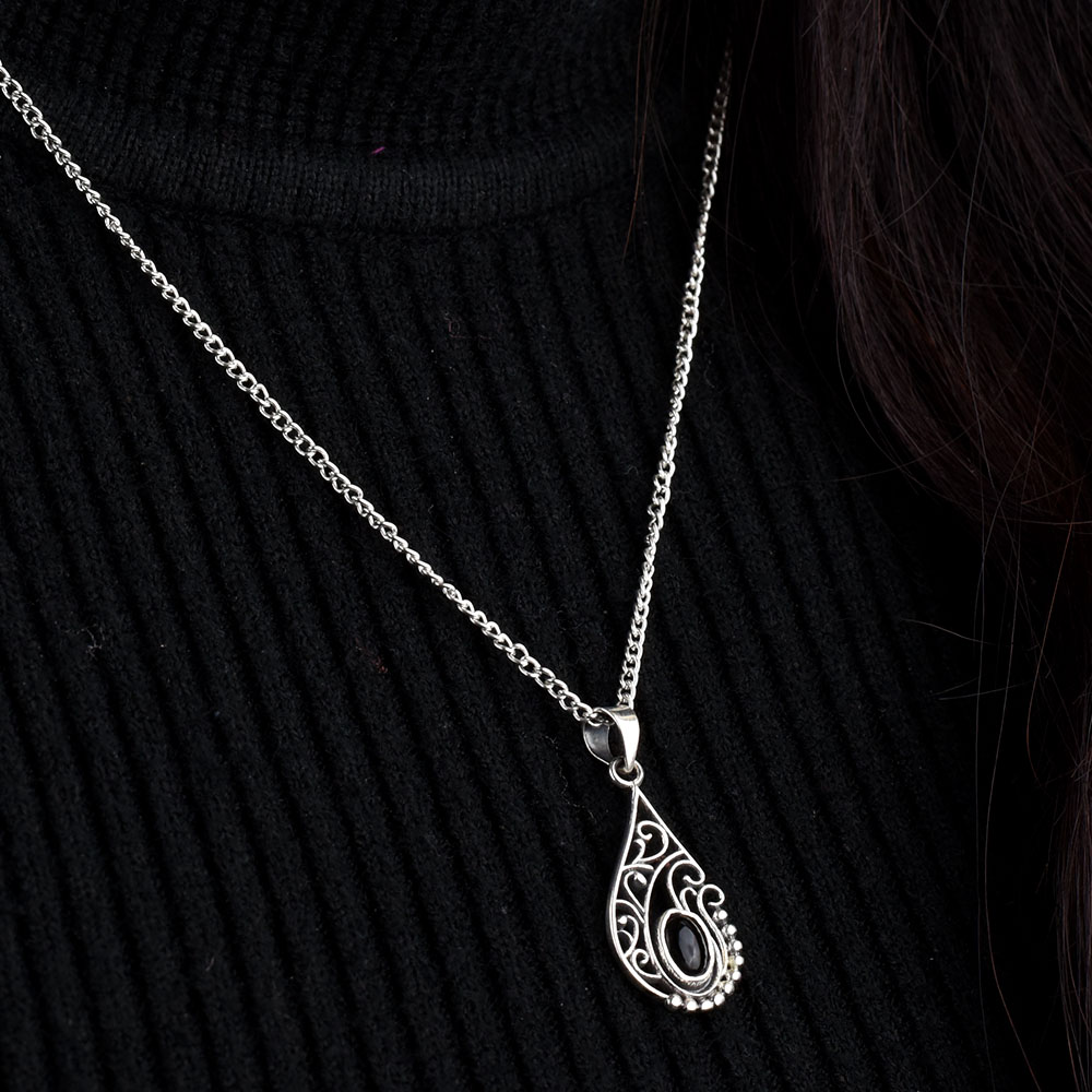 92.5 Sterling Silver Black Onyx Stylish Pendant Jewelry is a great every day wear for your daughter, wife, sister and girlfriend. Birthday, Anniversary, Valentine, Christmas and Celebrations for your near and dear ones.