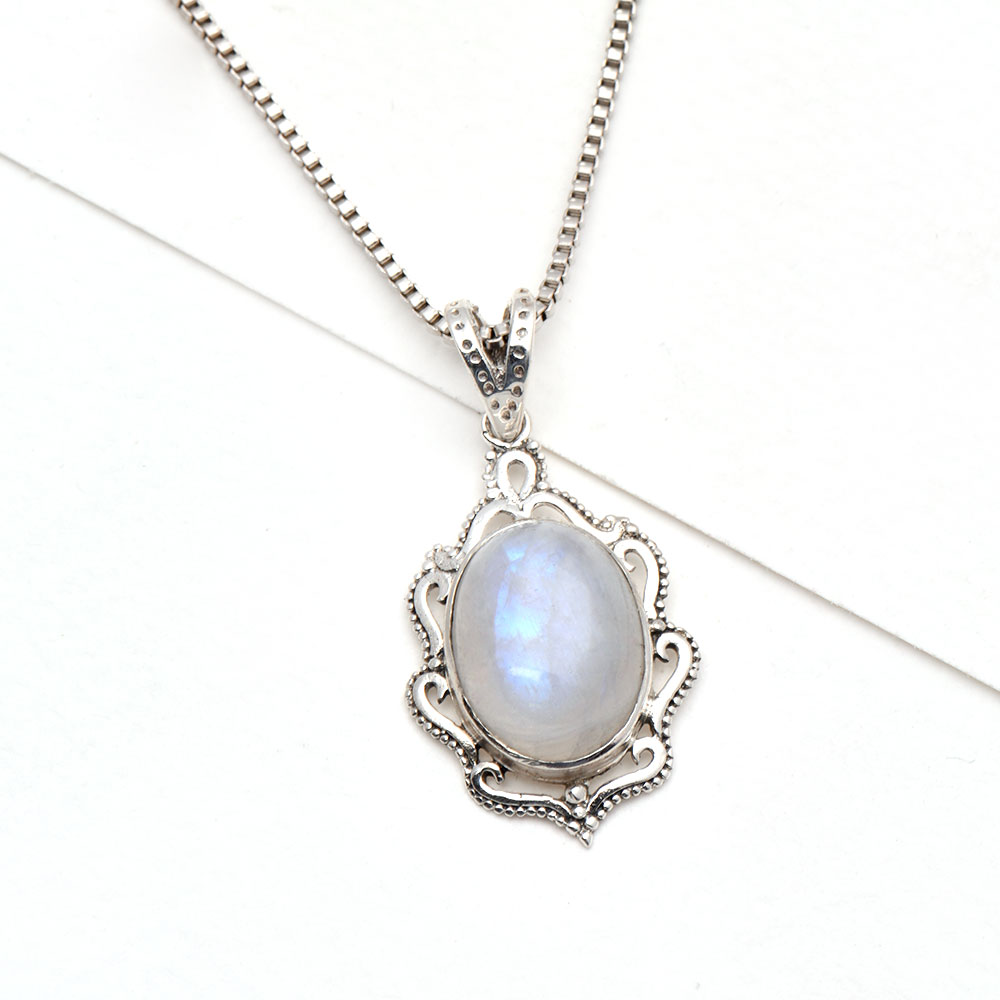 • 92.5 Sterling Silver Boho Chic Moonstone Pendant Designer Frame Pendant