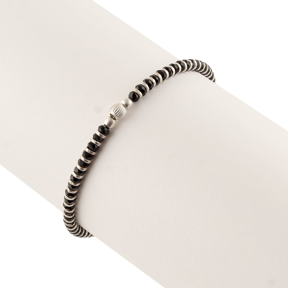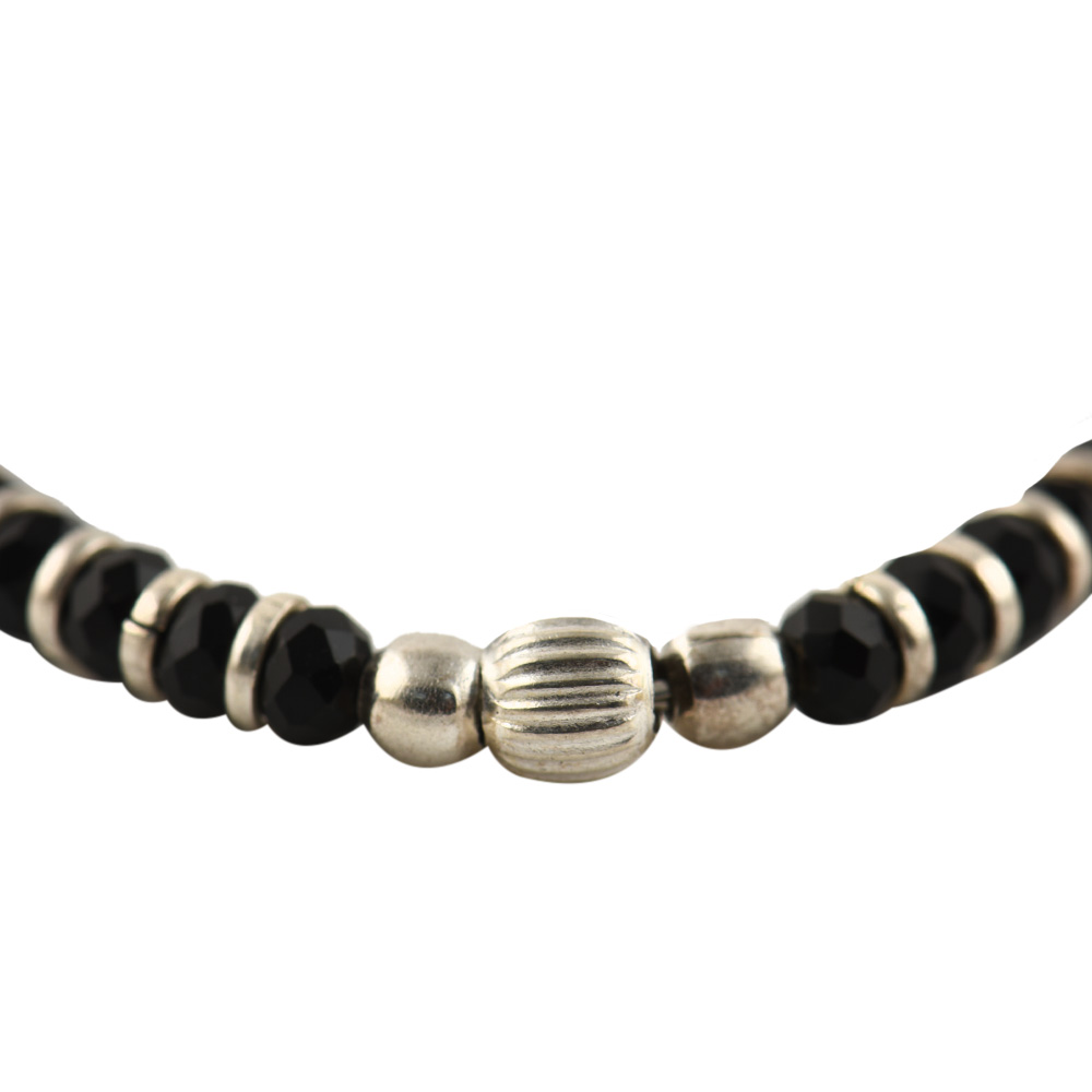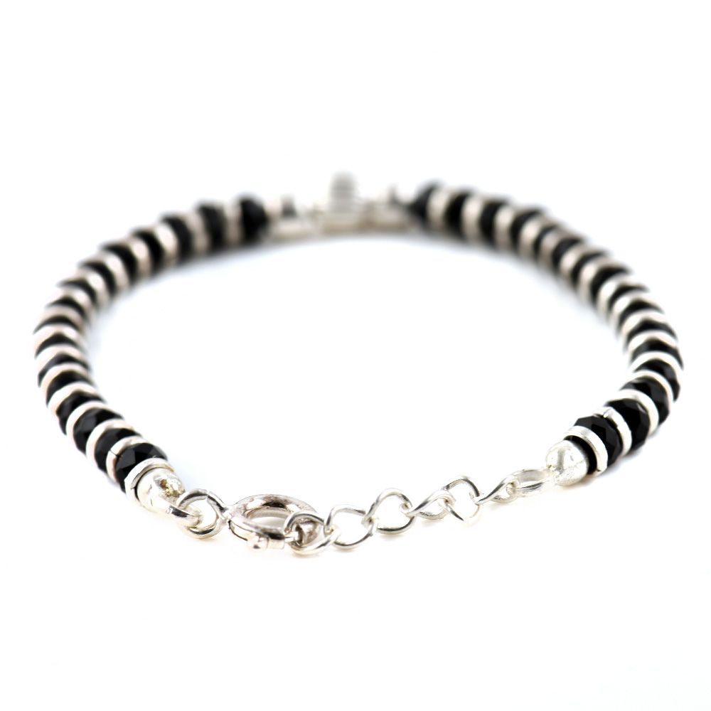 • 92.5 Sterling Silver Bracelet Crystal Black Bead And Silver Ball Charm