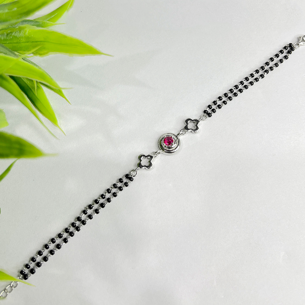 This dual layer bracelet is crafted in 925 sterling silver and designed for elegant everyday wear. The layered chain structure is complemented by a central arrangement of emerald ruby pink stone that adds a refined color accent. Lightweight and balanced in form, the bracelet offers comfort with visual detail suited for both casual and occasion styling. Packed and quality checked by Indianshelf.
