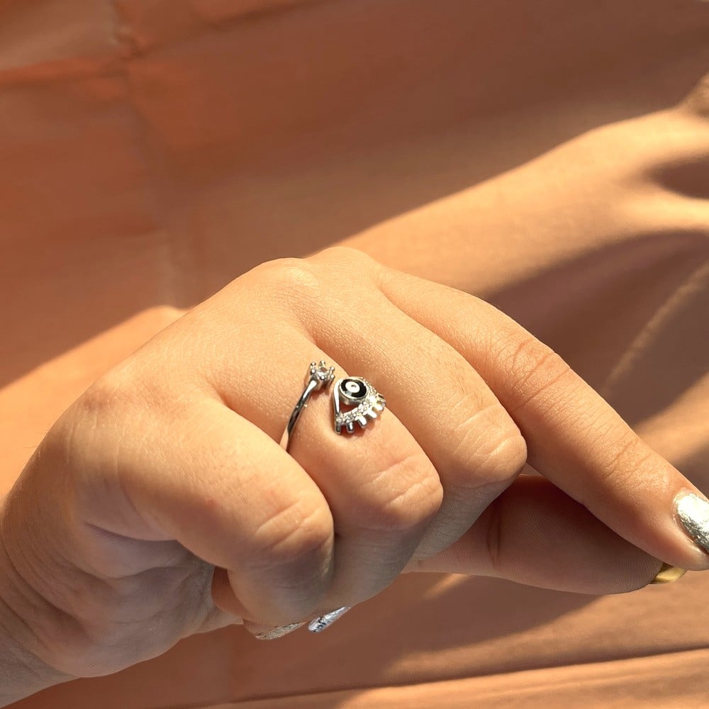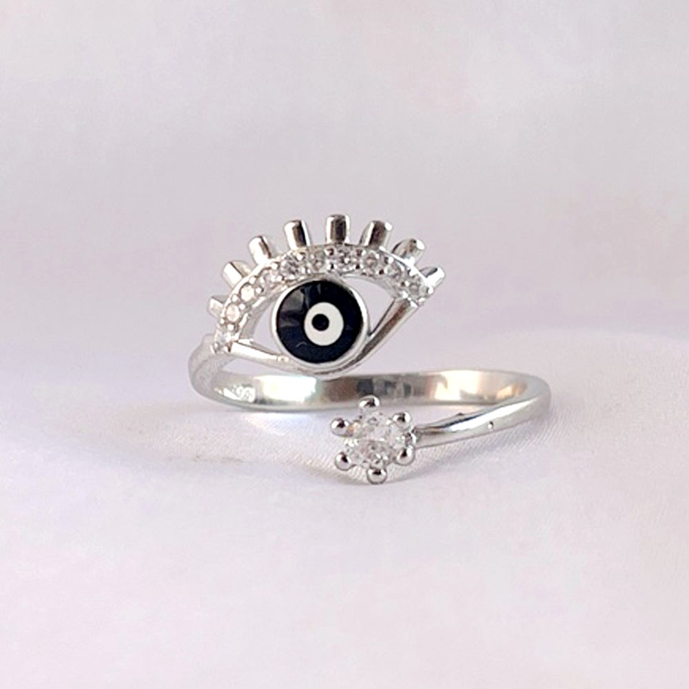 • 92.5 Sterling Silver Deep Blue Evil Eye Lash Ring