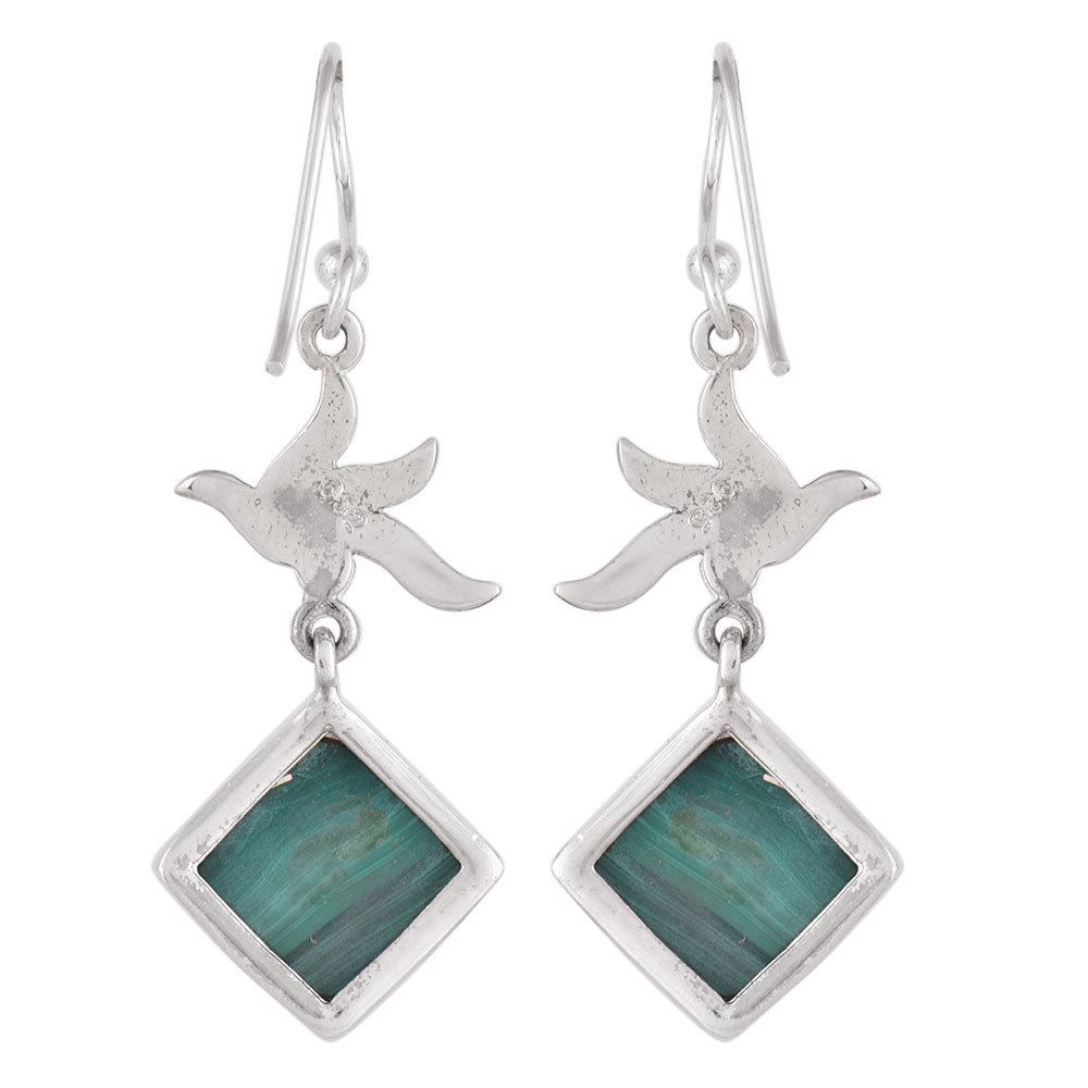 92.5 Sterling Silver Earings New Dessign Malachite Floral Fancy Earrings