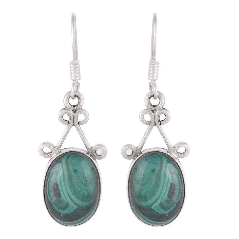 92.5 Sterling Silver Earings Oval Malachite Fancy Earrings