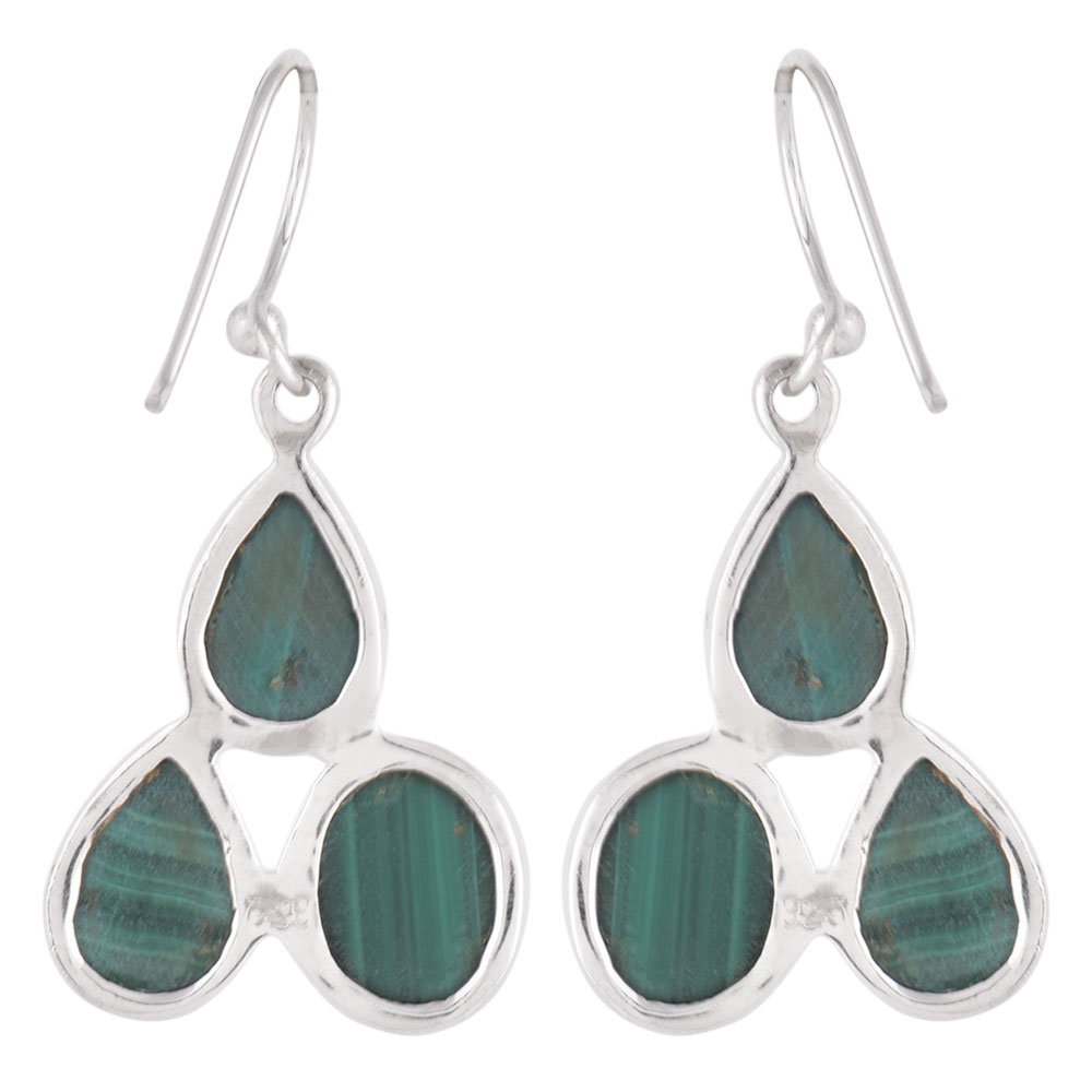 92.5 Sterling Silver Earings Three Studded Malachite Earrings