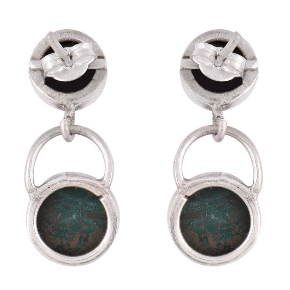 92.5 Sterling Silver Earings Twin Malachite Drop Fancy Earrings