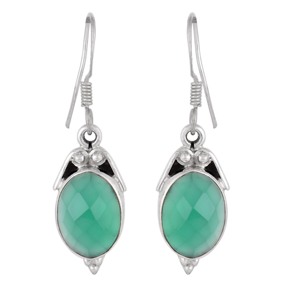 92.5 Sterling Silver Earring Green Onyx Dangle Earring