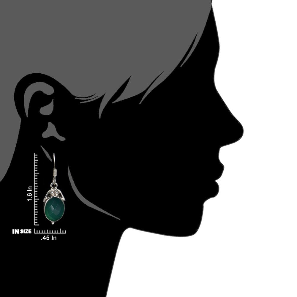 Handmade 92.5 Sterling Silver Fancy drop dangle earrings for everyday wear with oval Green Onyx for girls and women the eternal classical design these vintage earrings will complement any occasion ethnic wear/ daily / college / party wear