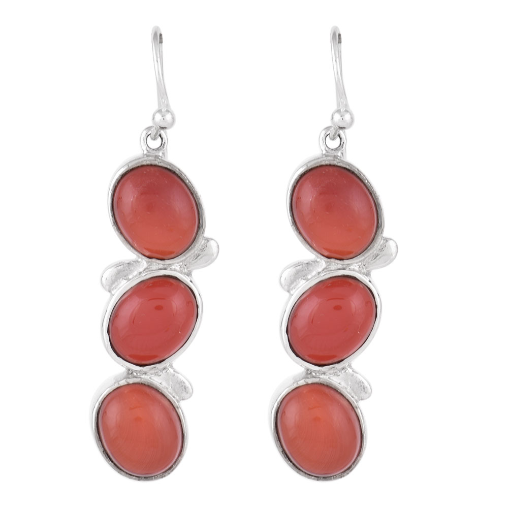 92.5 Sterling Silver Earring Red Jade Focal Stones Dangler Earring