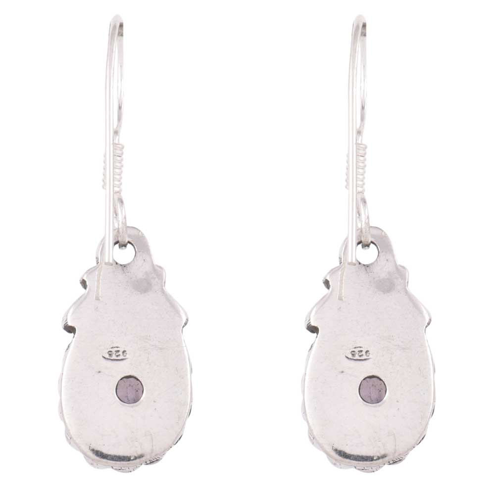 92.5 Sterling Silver Earrings Amethyst And Floral Carvings Dangle Earrings