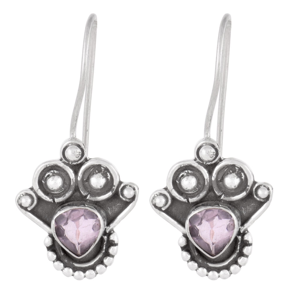 • 92.5 Sterling Silver Earrings Amethyst Angle Wings Hook Earrings