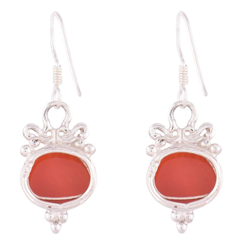 • 92.5 Sterling Silver Earrings Big Carnelian Crown Design  Earrings