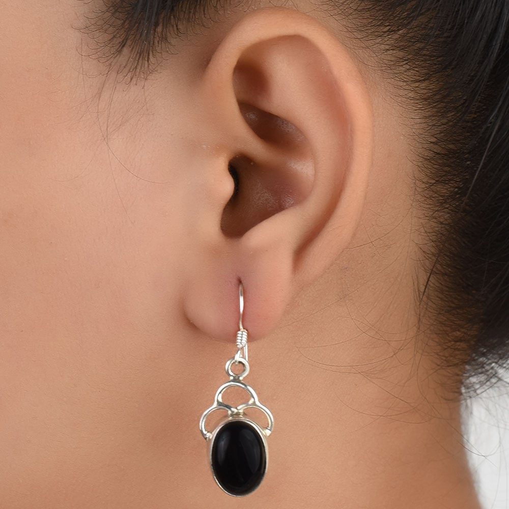 92.5 Sterling Silver Earrings Big Oval Black Onyx Cabochon Dangler Earrings are the perfect accessory that complements that lovely gown, dress or suit. This dangler is suitable for every day office wear or family get together outing.