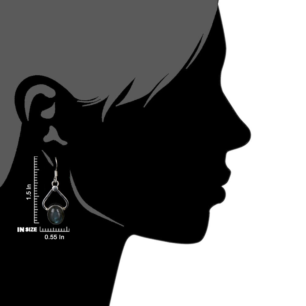 A very simple looking 92.5 Sterling Silver earrings with a long oval shaped agate stone in bezel setting with scroll design on top of the stone attached to the hook with rope design. Wear it to office and college daily.