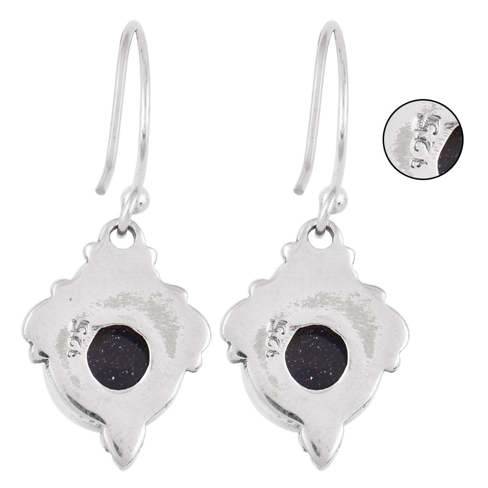 92.5 Sterling Silver Earrings Blue Goldstone Wire Hook Earrings