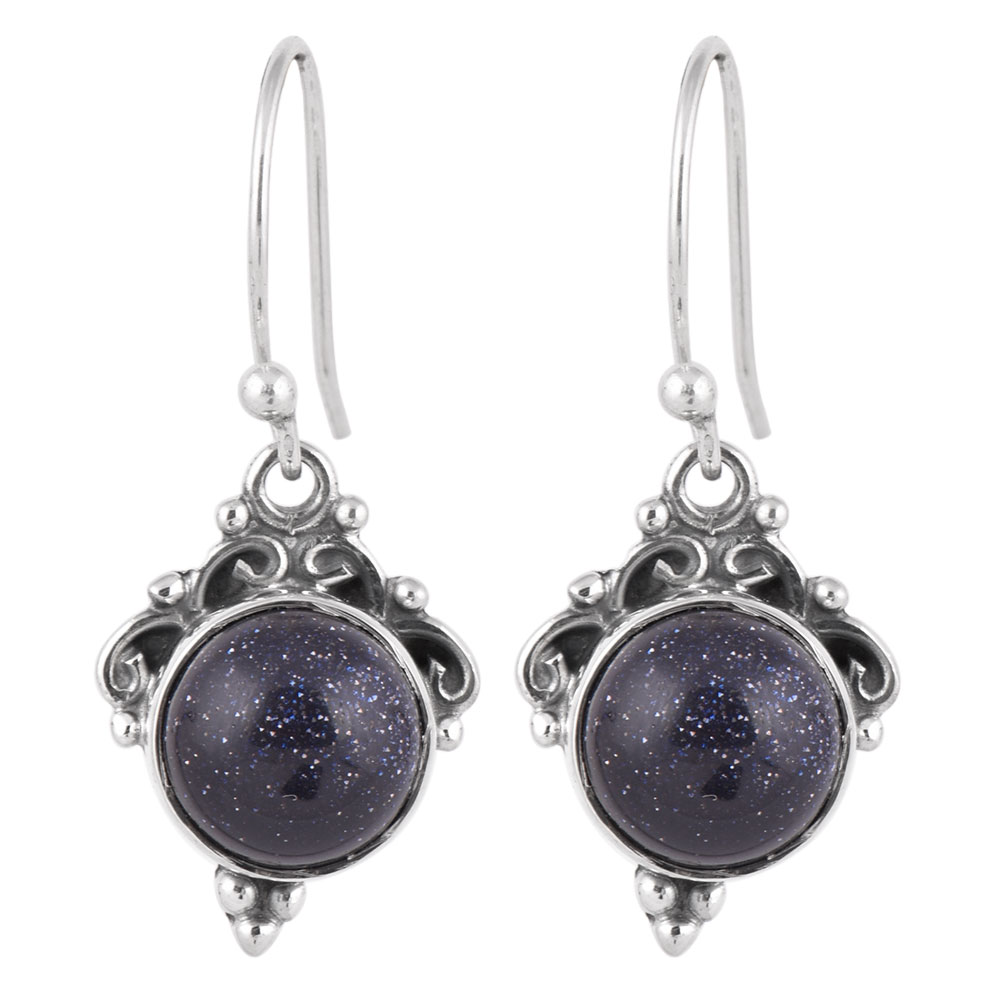 Handmade 92.5 Sterling Silver Fancy and everyday wear with single round blue Goldstone for girls and women the eternal classical design these vintage earrings will complement any occasion ethnic wear/ daily / college / party wear.