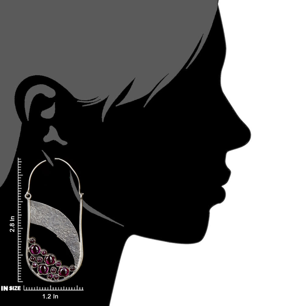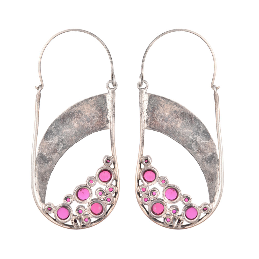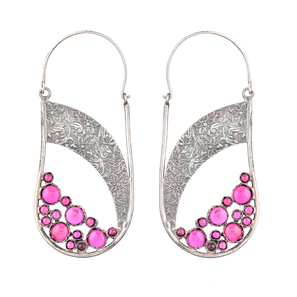 • 92.5 Sterling Silver Earrings Boho pink Tourmaline Semi precious Stones and Floral band
