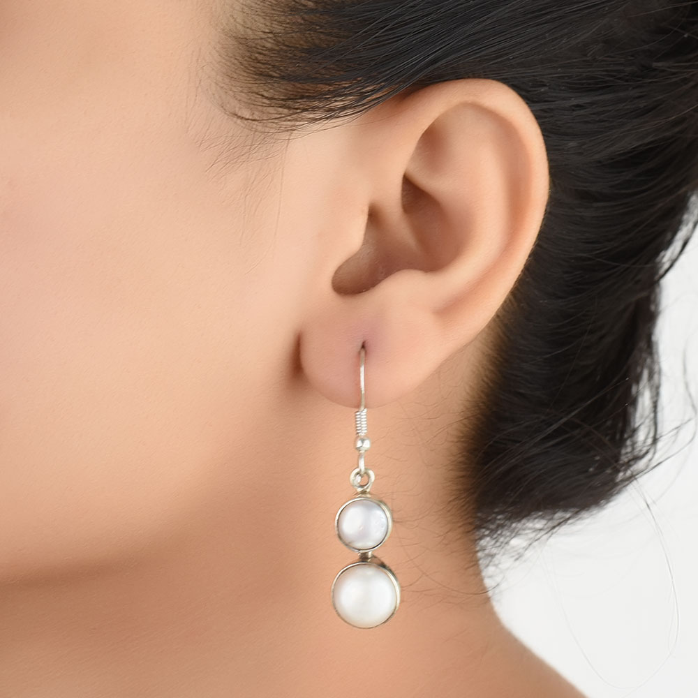 • 92.5 Sterling Silver Earrings Casual Twin Pearl Dangle Earrings