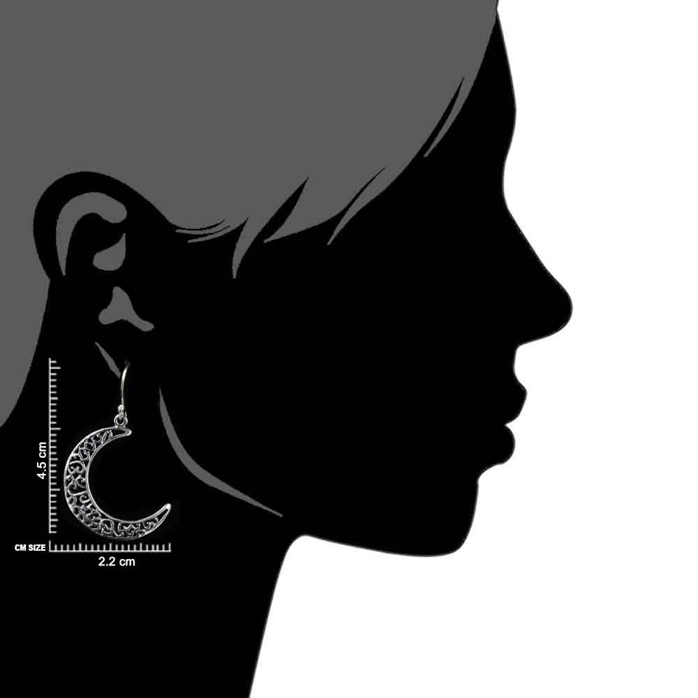 92.5 Sterling Silver Earrings Crescent Moon Filigree Dangle earring