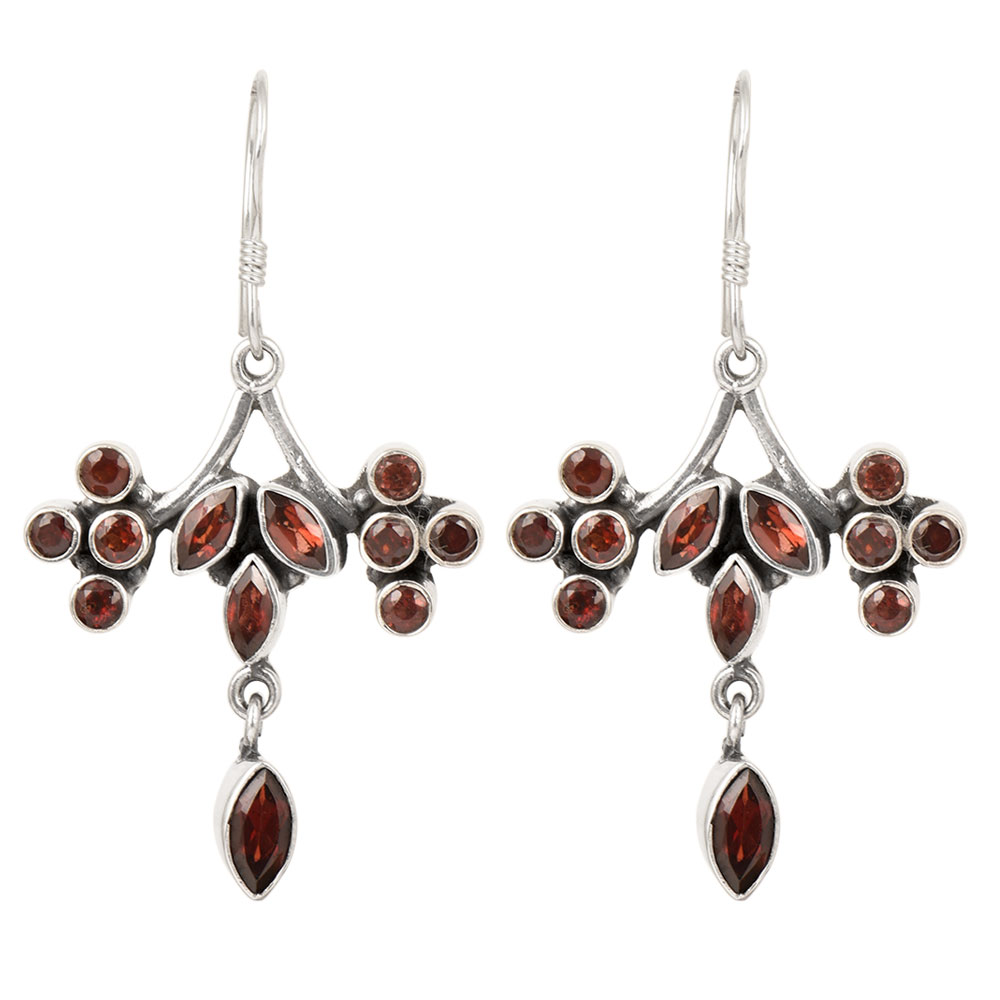• 92.5 Sterling Silver Earrings Designer Red Garnet Hanging Earrings