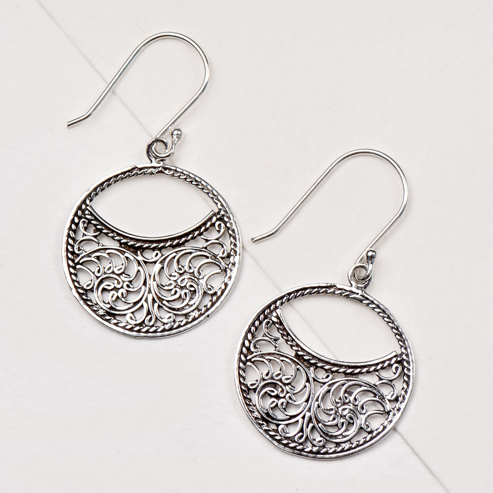 92.5 Sterling Silver Earrings Filigree Cut-out Disc Earrings