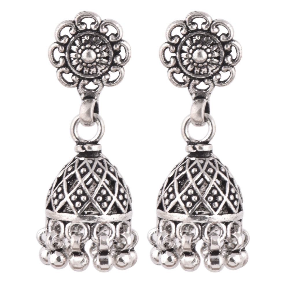 92.5 Sterling Silver Earrings Floral Jali Design Jhumkis