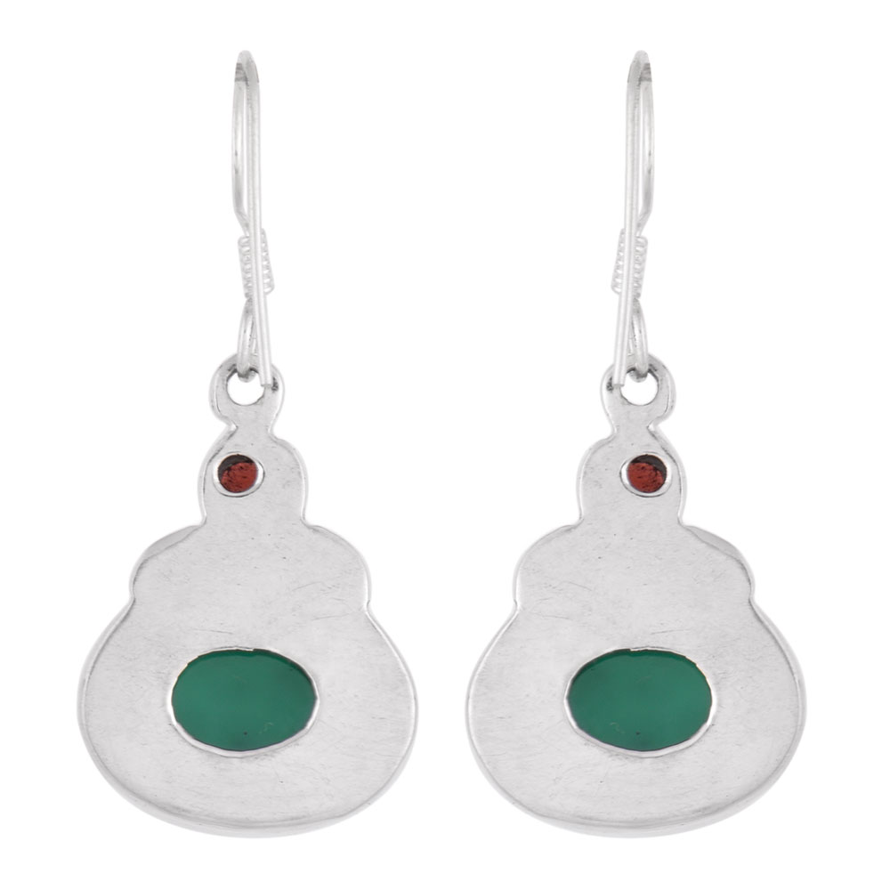 92.5 Sterling Silver Earrings Garnet And Green Onyx Gemstone Earrings
