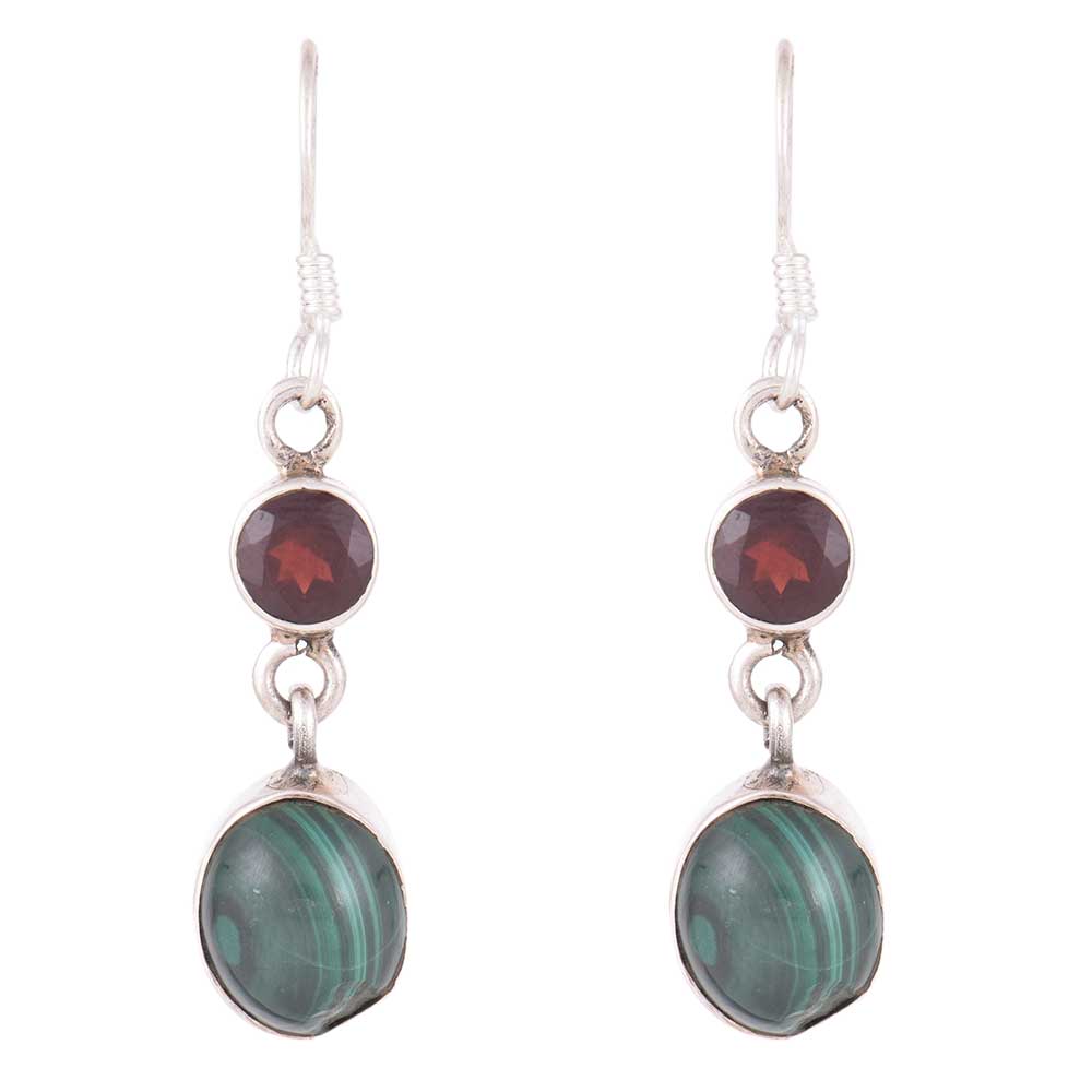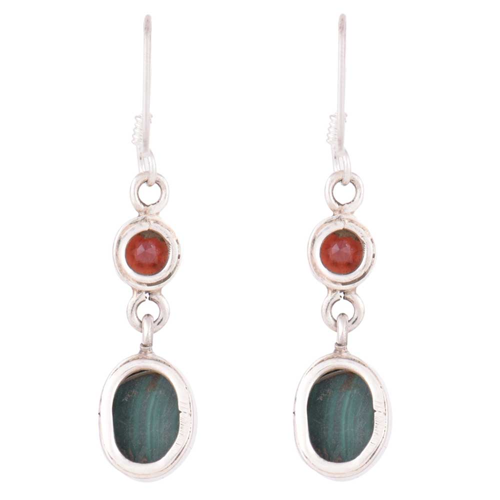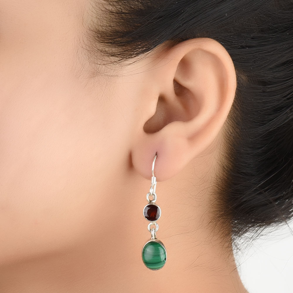 92.5 Sterling Silver Earrings Garnet Melachite Dangle Earrings