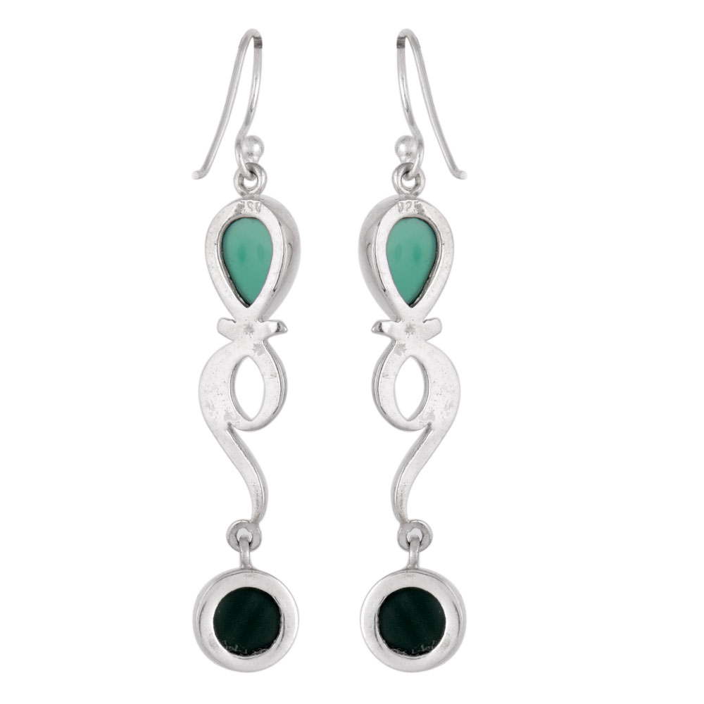 These earrings are handmade with tear green onyx 92.5 sterling silver flower geometric design long earrings with a hook and can be worn on birthdays, marriages, engagements or any special occasions to give it an Indian or traditional look.