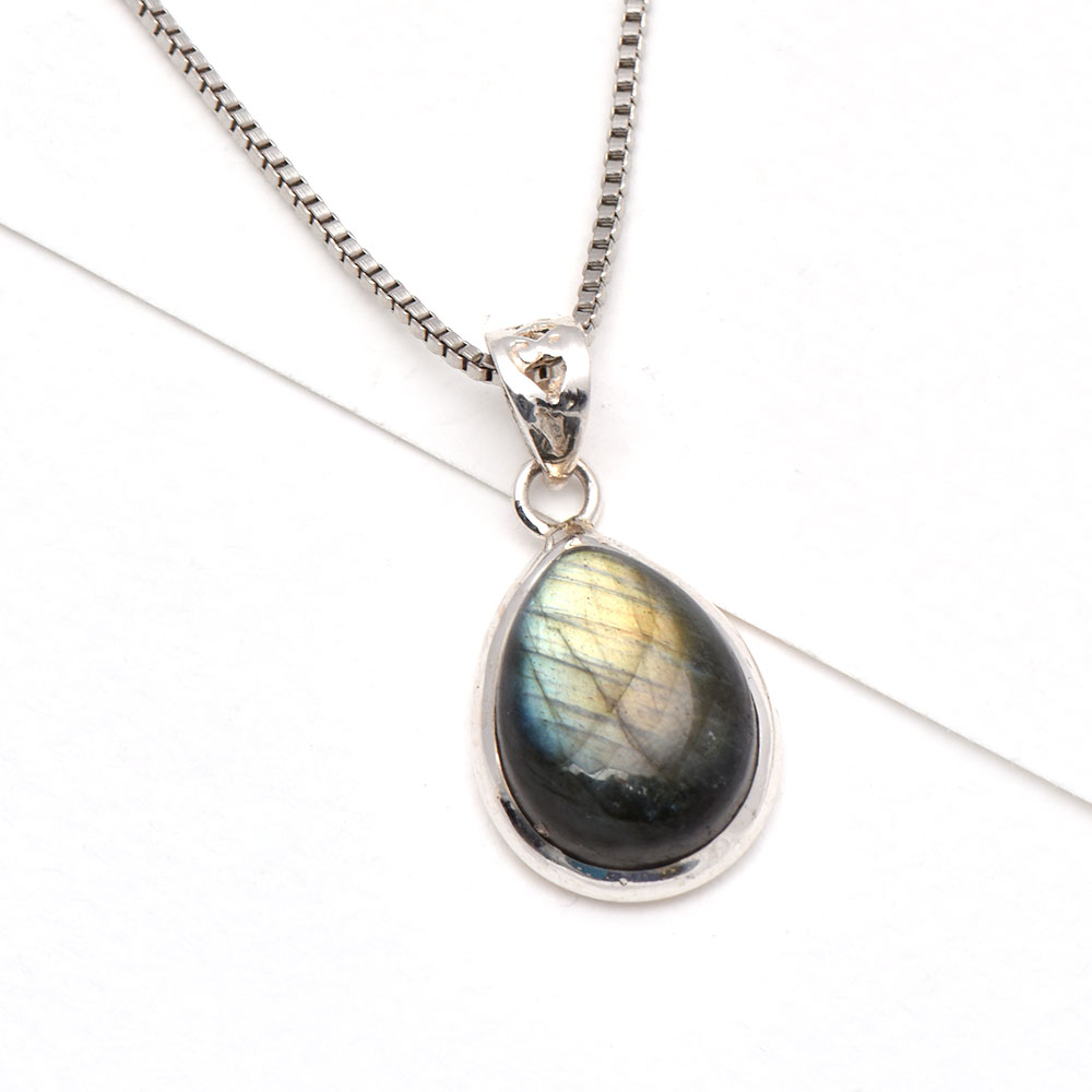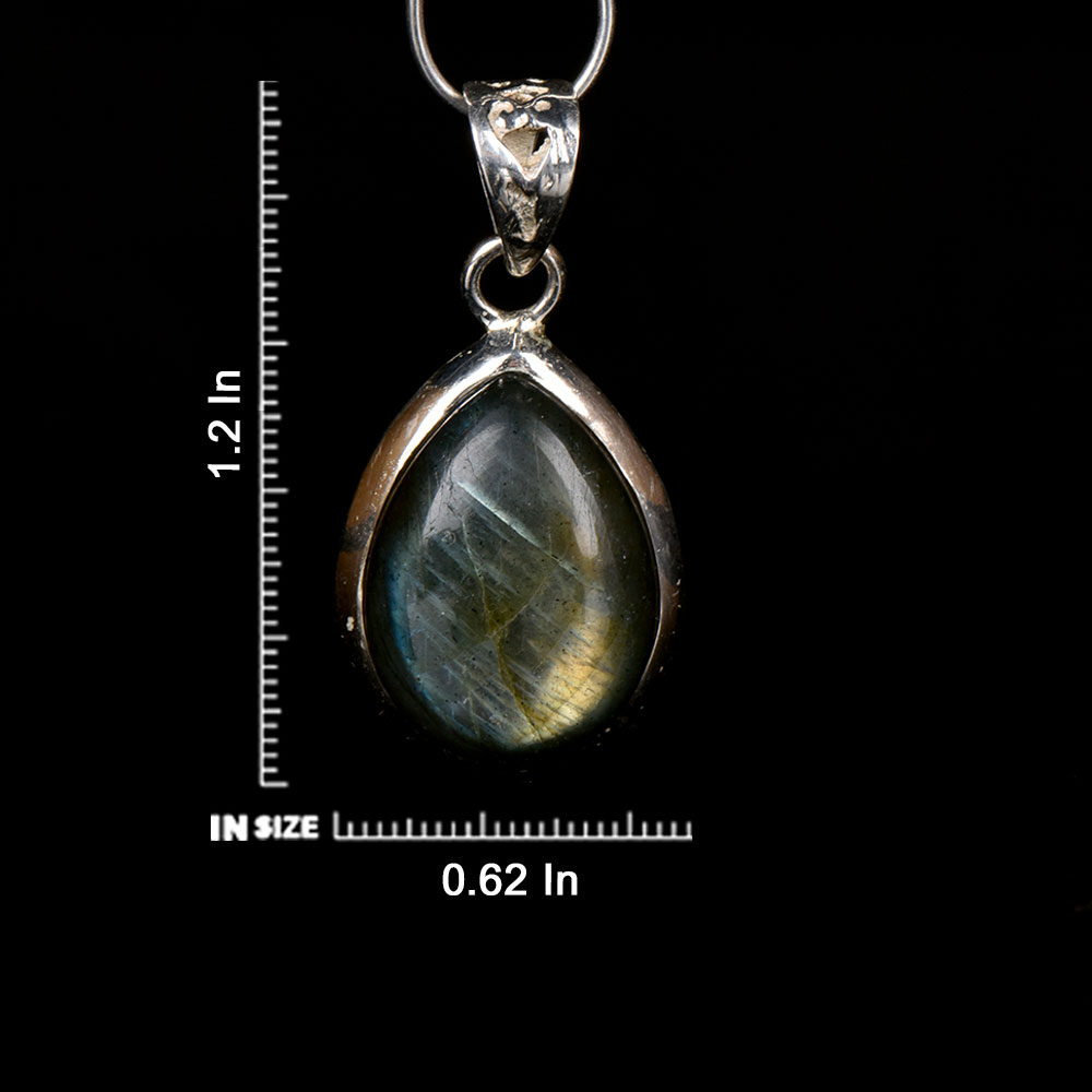 Glowing big teardrop shaped labradorite gemstones are highlighted by 92.5 Sterling Silver Pendant. They resonate a timeless and ancient aesthetic, and are perfect for everyday or a night out! Elegant bezel set pendant is handcrafted by expert artisans of India. Ideal gift for anniversary, Weddings and also for daily wear.