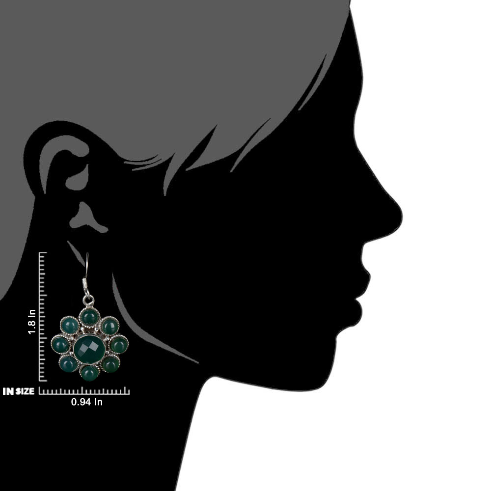 92.5 Sterling Silver Earrings Green Aventurine and Onyx Flower Earrings