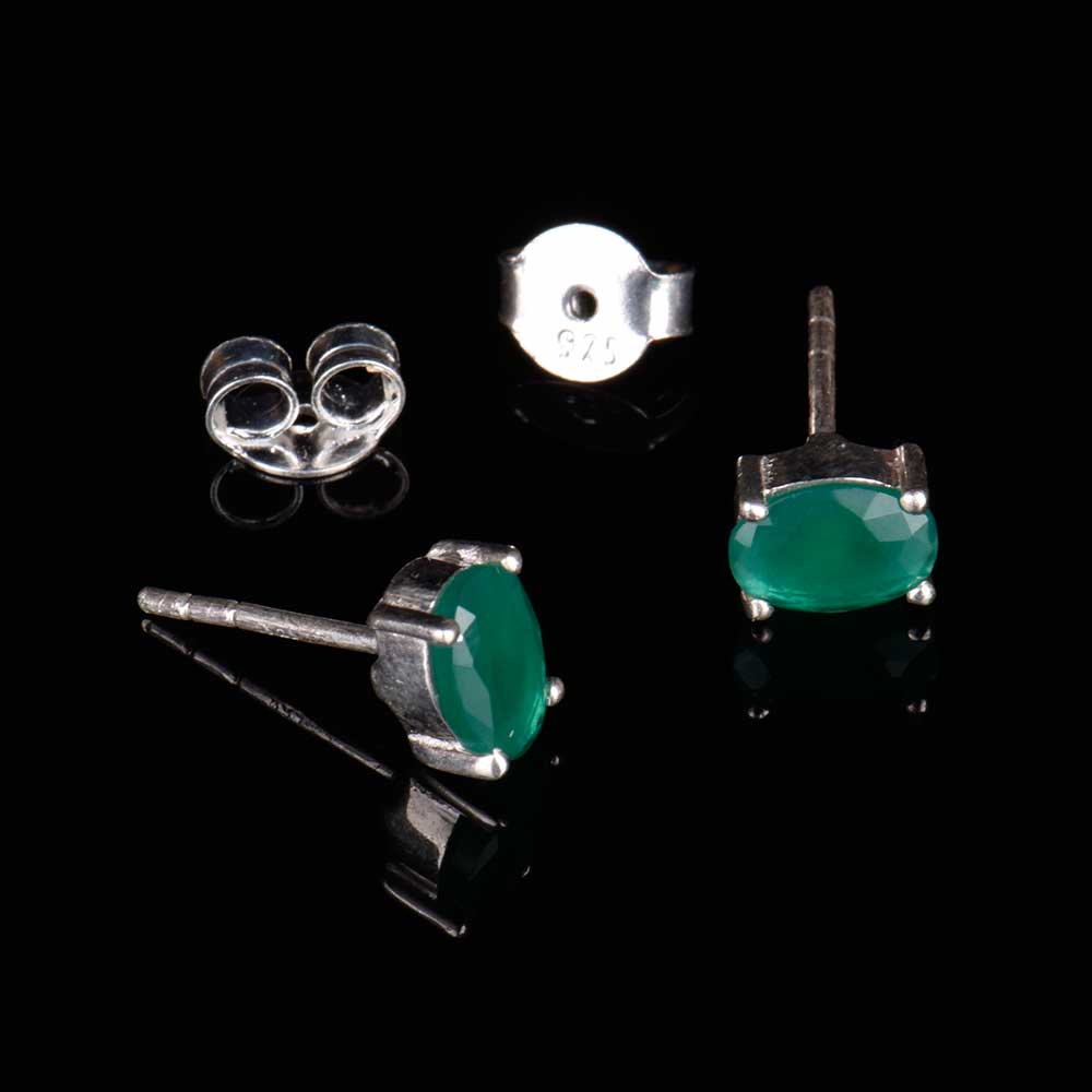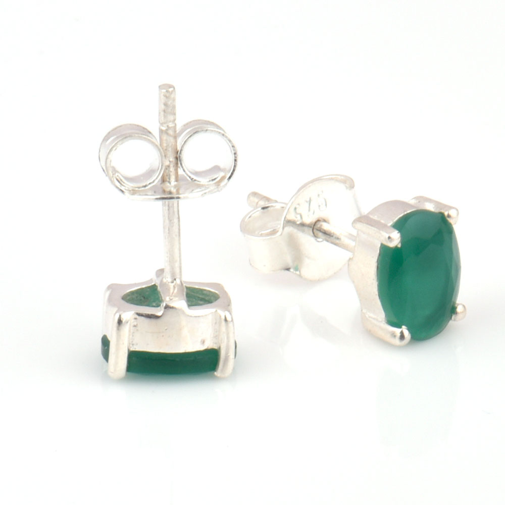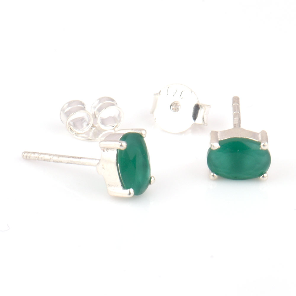 92.5 Sterling Silver Earrings Green Cubic Zirconia Semi Precious Gemstone Stud Earrings