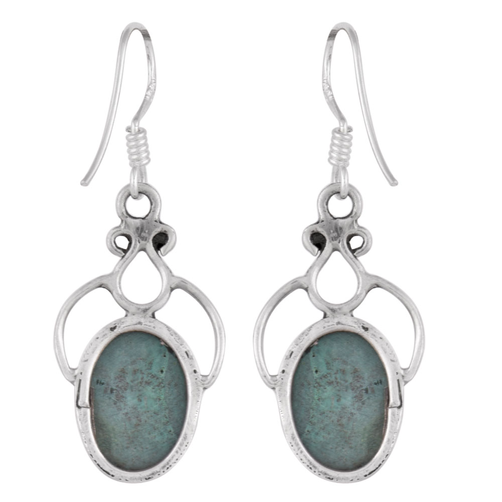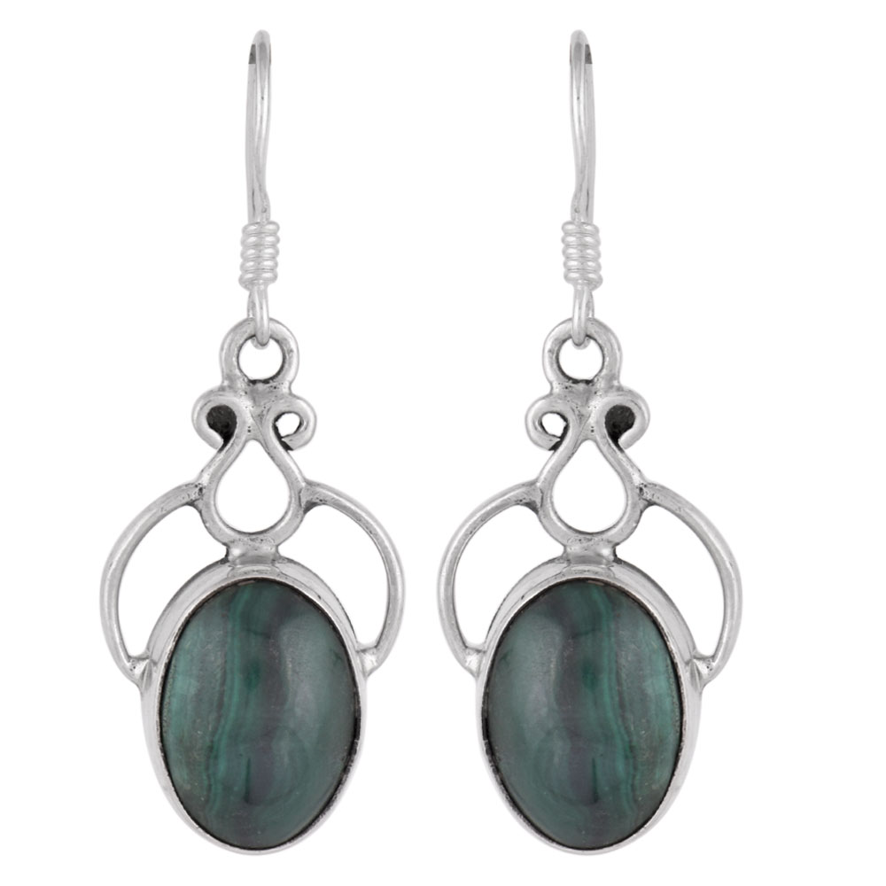 92.5 Sterling Silver Earrings Green Malachite Hanging Earrings