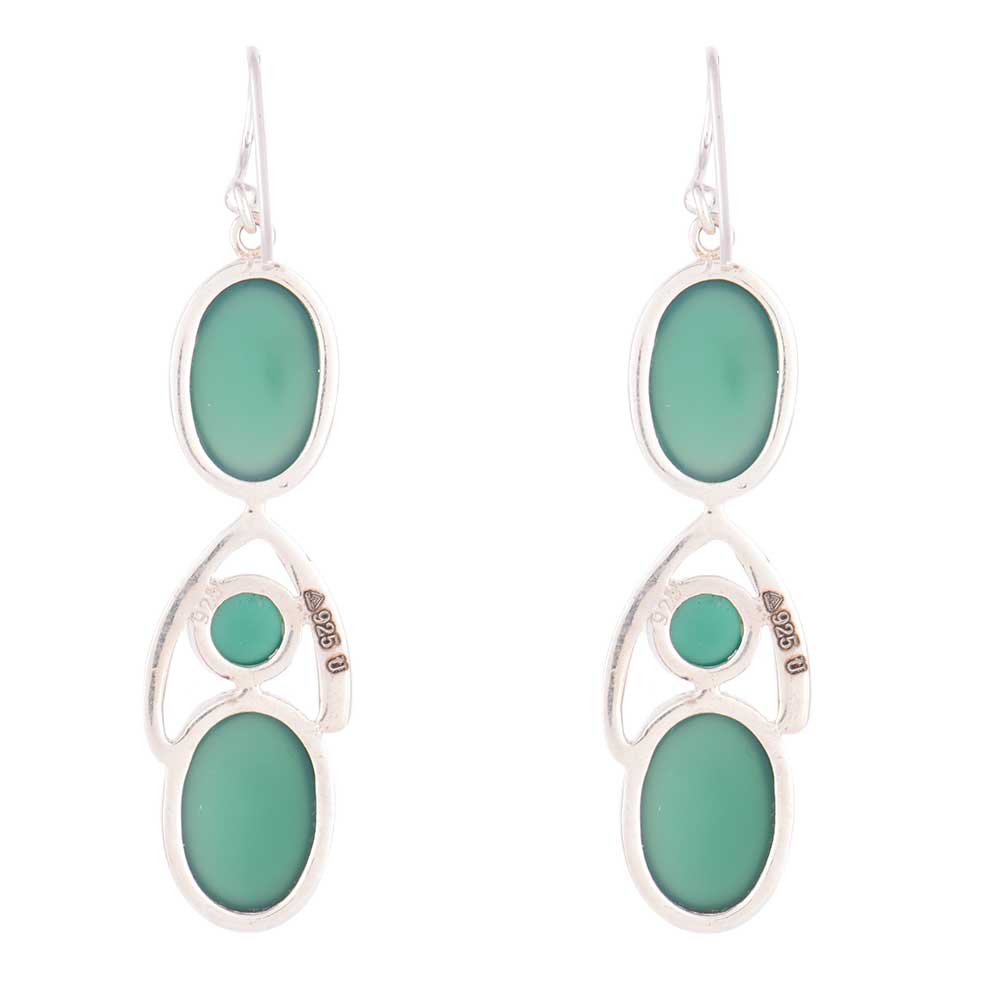 92.5 Sterling Silver Earrings Green Onyx Dangle Drop Earrings