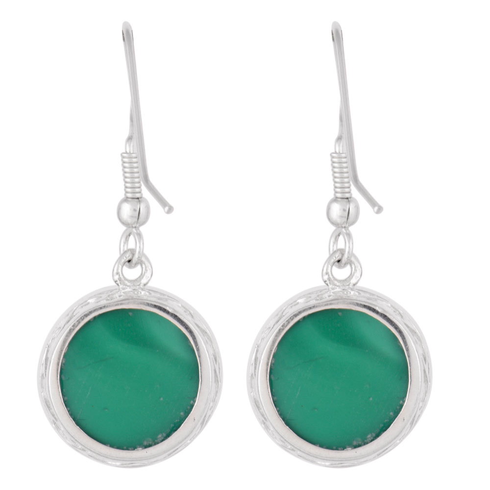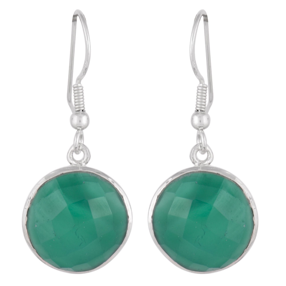 92.5 Sterling Silver Earrings Green Onyx Faceted Drop Earrings