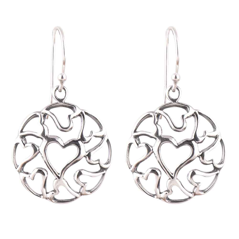 92.5 Sterling Silver Earrings Heart Design Danglers