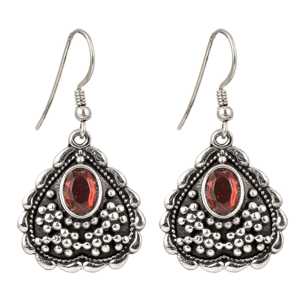 Handmade 92.5 Sterling Silver Fancy drop dangle earrings and everyday wear with ruby red stones for Girls and Women the eternal classical heart design these vintage earrings will complement any occasion ethnic wear/ daily / college / party wear.