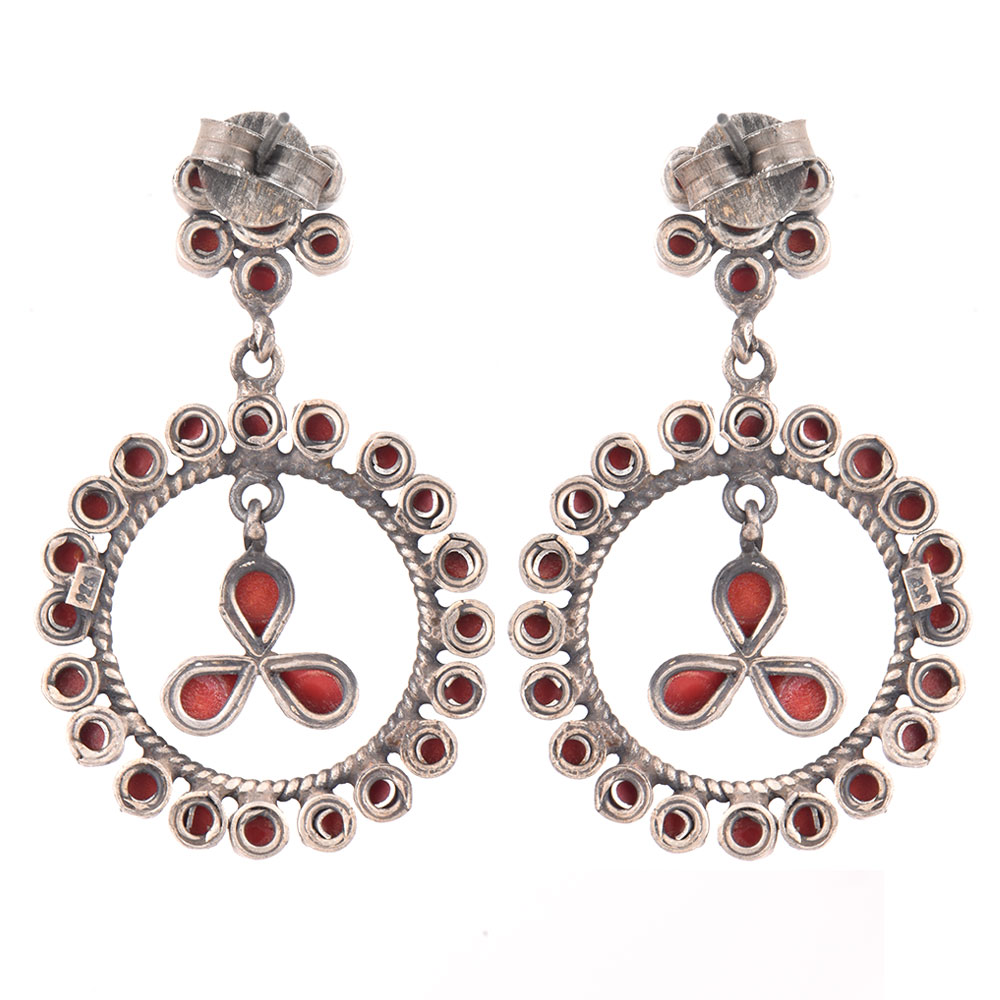 The perfect gift to women these mosaic circle dangle earrings with many coral stone of different shape and sizes with floral stud and heavy round coral stone studded ring fixed to the stud . are a graceful, fashionable and exciting. These circle mosaic earrings are the one you are looking for as a gift for her!
