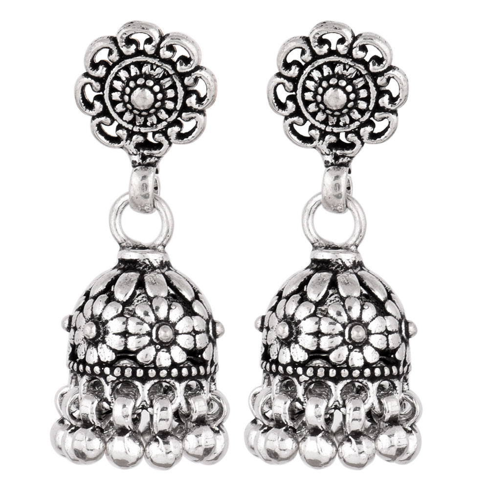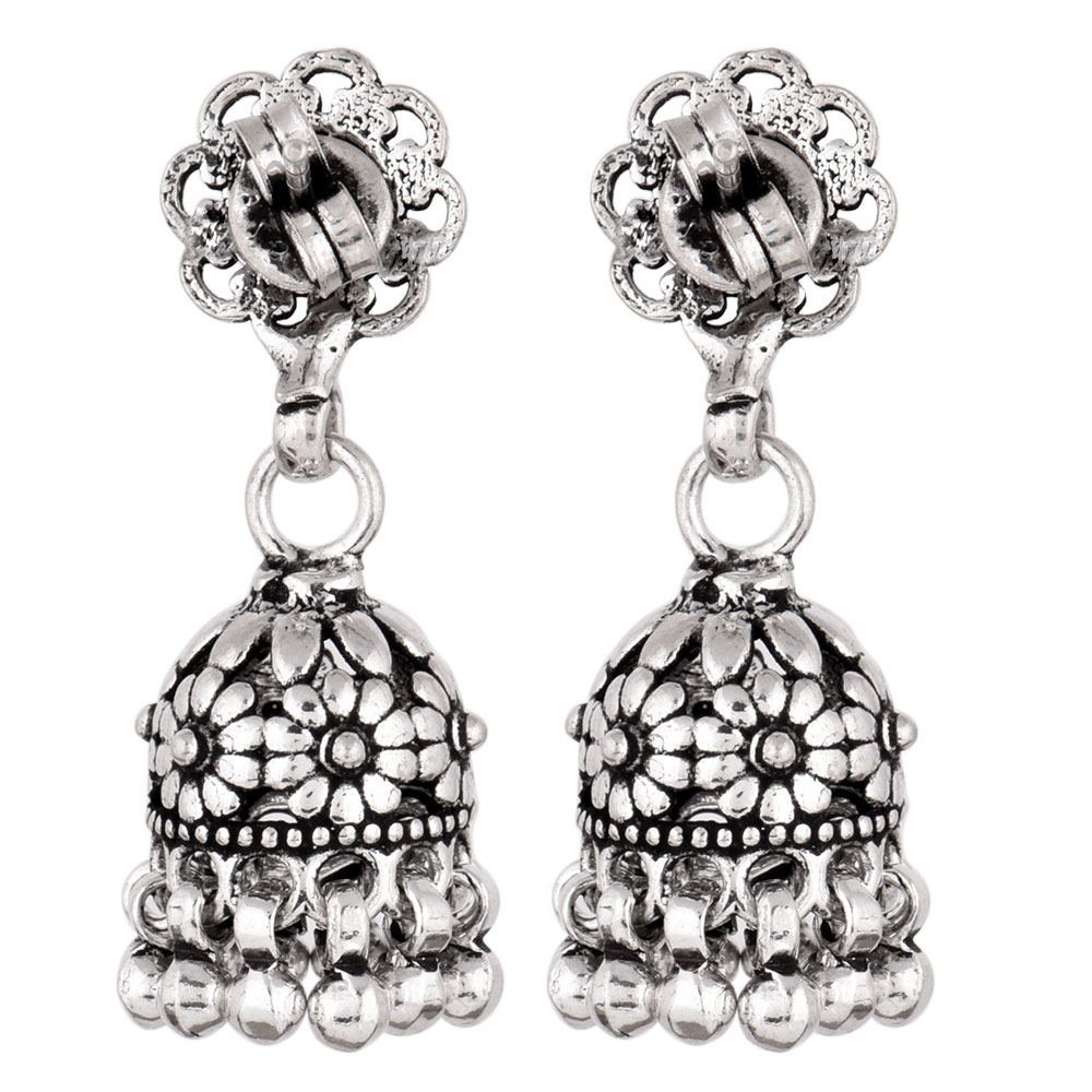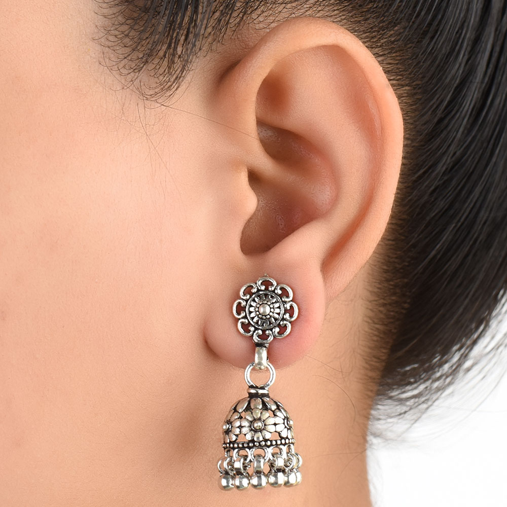 • 92.5 Sterling Silver Earrings Intricate Floral Stud  Traditional Jhumkies
