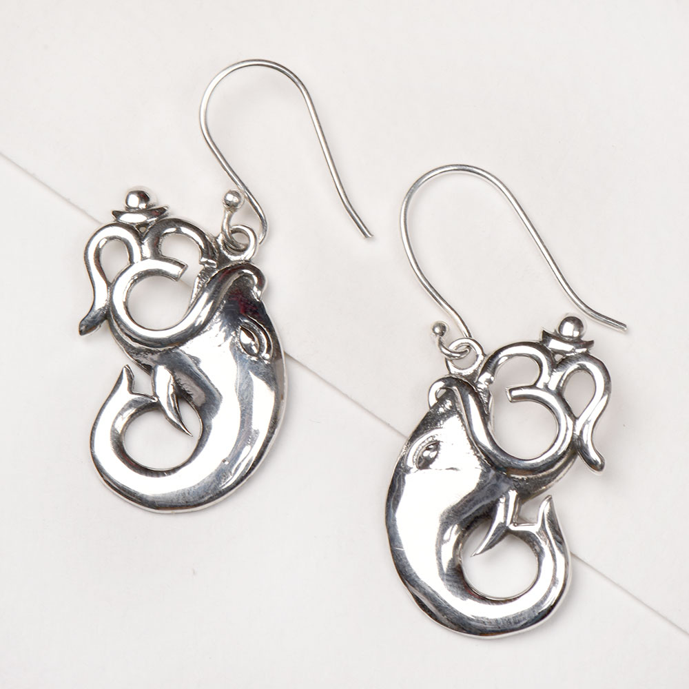 92.5 Sterling Silver Earrings Jagdamba Lord Ganesha with Om Silver
