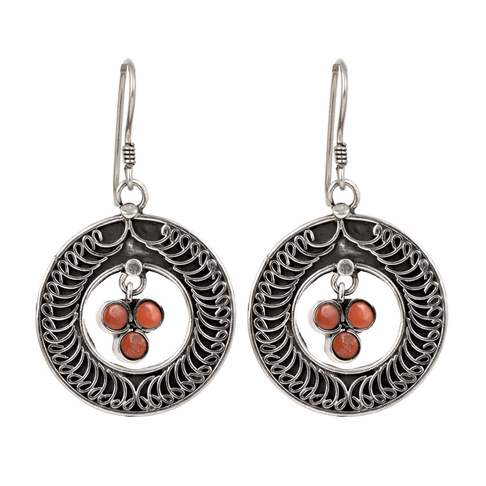 Made From 92.5 Sterling Silver With Jasper Hanging In An Engraved Silver Circle. Beautifully Designed Earrings Can Be Used On Birthday, Marriage, Engagement, Any Occasion highly recommended for Women and Girls and it Goes well with all attire.