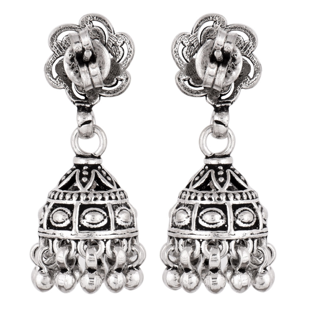 92.5 Sterling Silver Earrings Jhumka Tribal Jhumkis With Floral Design