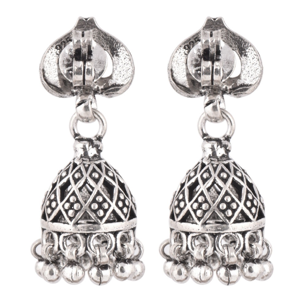 92.5 Sterling Silver Earrings Leaf Dome Shaped Traditional Jhumkis