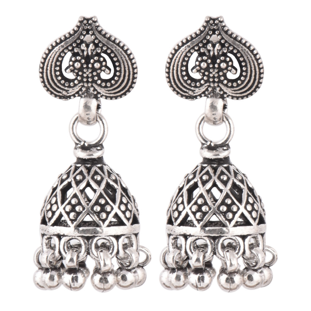 • 92.5 Sterling Silver Earrings Leaf Dome Shaped Traditional Jhumkis