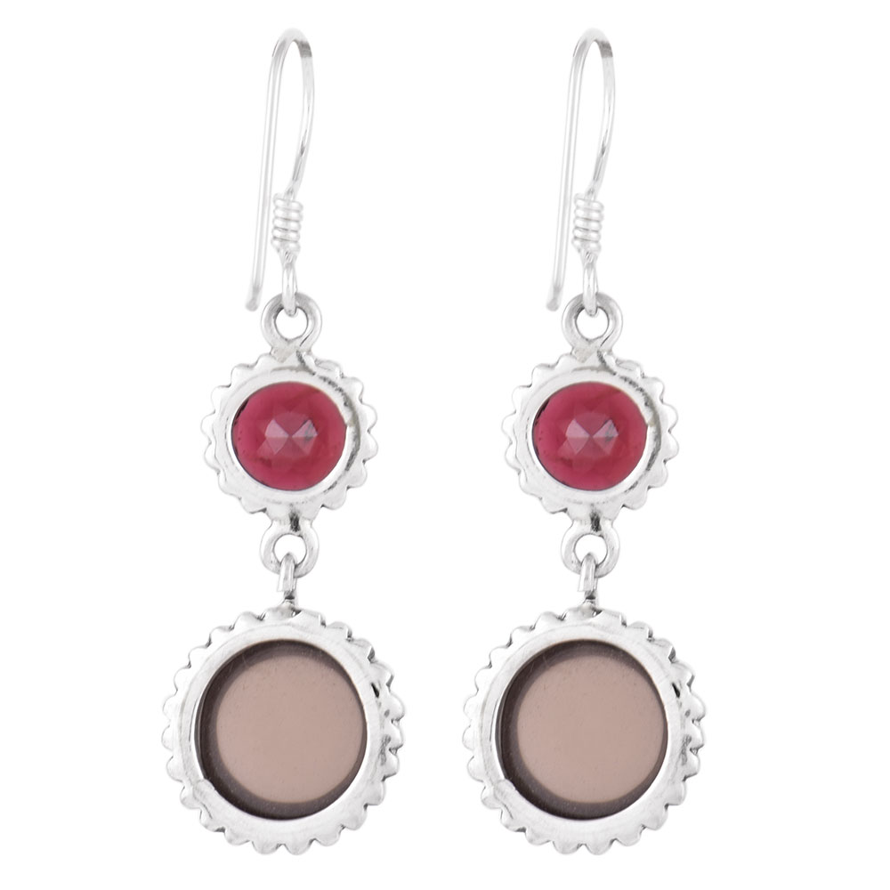92.5 Sterling silver Lapidolite And Garnet earrings are Fashioned with utmost precision, this gorgeous pair of earrings will spruce up your style in a jiffy. Simple design that goes with any outfit to add a natural, but contemporary look.