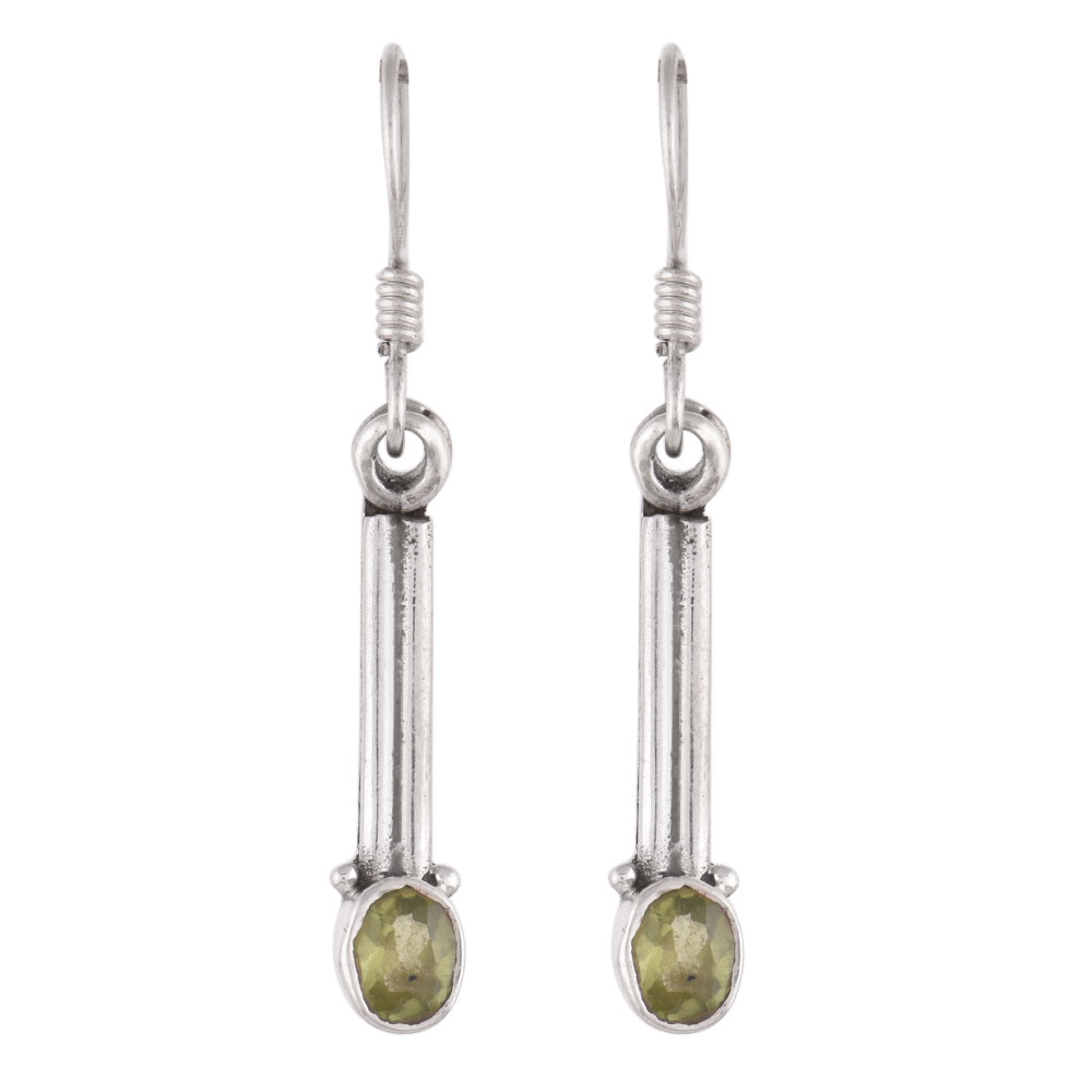 Add a modern twist to your simple looking everyday outfit with this modern 92.5 Sterling Siler earrings with a small oval peridot semi precious drop earrings . Made by local artisans this modern style danglers are the first choice of women.
